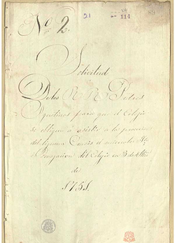Consulta de los padres Agustinos sobre participación del Colegio Mayor del Rosario en procesión