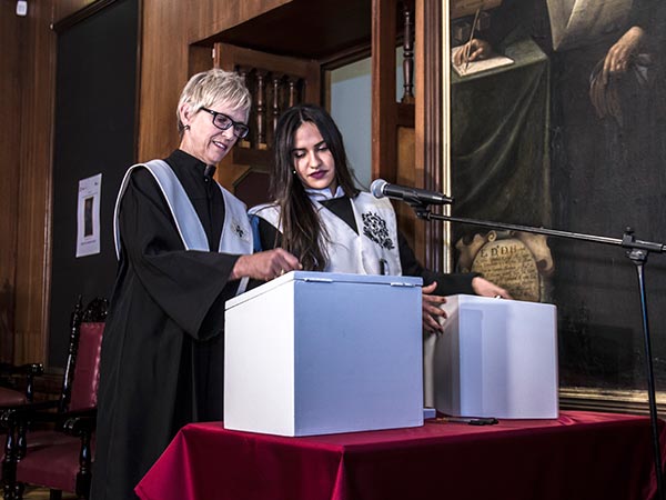 Luego del término fijado para estas deliberaciones se convoca a una elección, en sesión pública a la cual se invita a toda la comunidad rosarista, en el Aula Máxima del Claustro.
