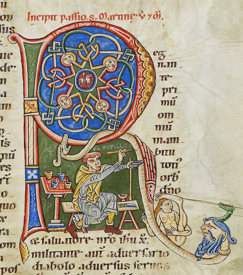 Autorretrato del iluminador Rufilo, s. XII [Wikipedia].