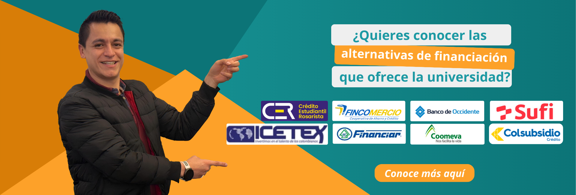 La Universidad del Rosario ha realizado diferentes alianzas con diferentes entidades financieras para iniciar solicitud de crédito educativo, igualmente ha realizado alianzas con entidades públicas y privadas a través de fondos que te ayudarán hasta con el 100% del valor de tu matrícula.