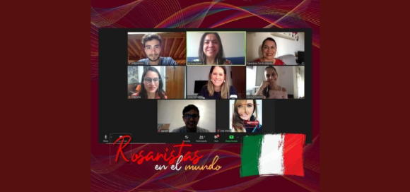 El pasado 23 de julio se realizó un encuentro virtual con la comunidad Rosarista residente en Italia. El encuentro estuvo a cargo de Ana María Novoa, directora de Desarrollo y Egresados, y Luisa Godoy, canciller de la Universidad del Rosario. Ellas abrieron esta actividad resaltando la importancia de generar estos espacios para fortalecer relaciones con egresados que residen en el exterior y sobre todo en Italia, país en el que hay un gran número de Rosaristas, así mismo resaltaron la relevancia de empezar a crear vínculos académicos con todos los miembros de la institución.