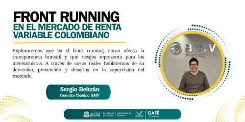 Esta charla abordará la práctica del front running en el contexto del mercado de renta variable colombiano, explicando en qué consiste, cómo afecta la equidad y la transparencia en las operaciones bursátiles, y qué implicaciones tiene para los inversionistas y la integridad del mercado. A través de casos ilustrativos y un análisis del marco regulatorio vigente, se discutirán los mecanismos de detección, prevención y sanción de esta conducta, así como los retos que enfrenta la supervisión del mercado en Colombia frente a este tipo de prácticas.