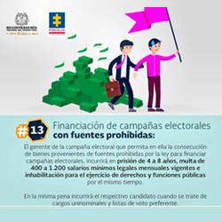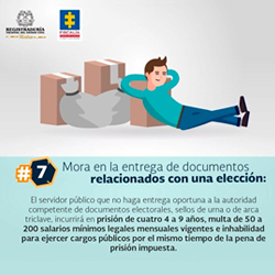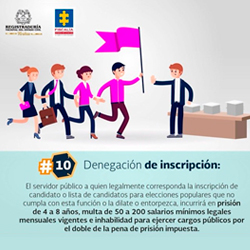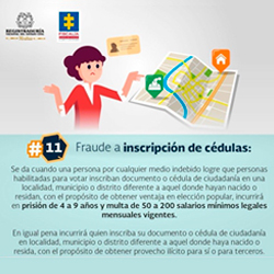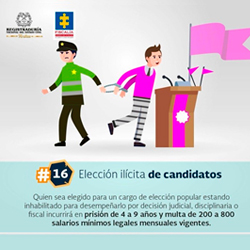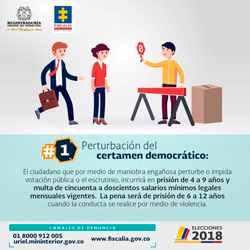 De acuerdo con la información de la Registradría Nacional del Estad Civil y la Fiscalía General de la Nación, se establece que en el Código Penal Colombiano se encuentran 16 delitos electorales.