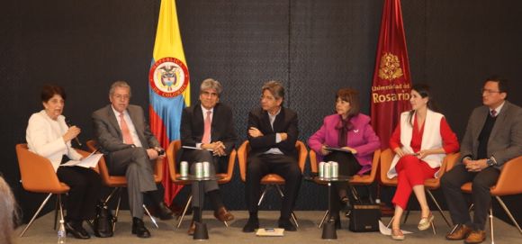 El panel fue moderado por Cristina Pardo Schlesinger, decana de la Facultad de Jurisprudencia, quien abrió la discusión subrayando la importancia de preservar el equilibrio entre democracia participativa y seguridad jurídica. El evento se llevó a cabo en el Auditorio Jockey de la Universidad del Rosario con palabras de bienvenida de la rectora Ana Isabel Gómez, quien afirmó: “La Universidad tiene el deber de propiciar estos encuentros en los que el conocimiento y la experiencia jurídica se ponen al servicio del país”.