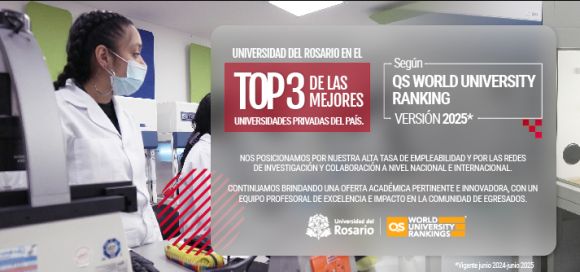 Así mismo, el Rosario es reconocida en el ranking por la alta tasa de empleabilidad, que es superior al promedio del país e incluso al promedio de la región de América y el Caribe, lo que deja ver el compromiso de la universidad con la formación de profesionales que estén acordes a las necesidades del mercado. Más del 70% de nuestros graduados tienen vinculación laboral relacionada directamente con el programa de estudio y la estrategia de empleabilidad e inserción laboral es parte de los aspectos destacados con sello de calidad internacional QS STARS, la máxima calificación de cinco estrellas que otorga QS, que se suma a que ser Rosarista implica una vocación de liderazgo académico, ético y humano.