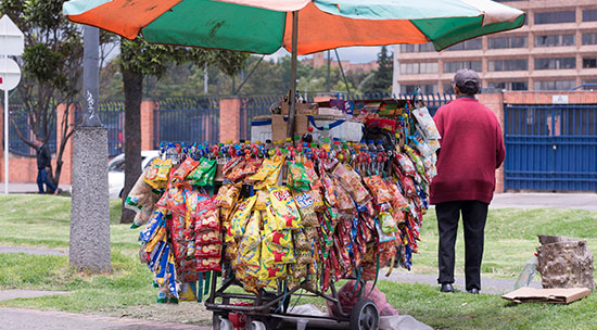 Natalia Umaña es el rostro de ese porcentaje de la población que se las arregla para encontrar un ingreso en las calles. Bordea los 35 años y se gana la vida vendiendo comidas rápidas. Es bachiller, pero asegura que la falta de oportunidades la llevó a rebuscarse el sustento en el comercio informal. “Mi situación laboral es precaria, porque no sé cuánto voy a vender al día, no tengo un sueldo básico ni fijo, entonces me toca acomodarme a lo que pase”, sostiene con resignación.
