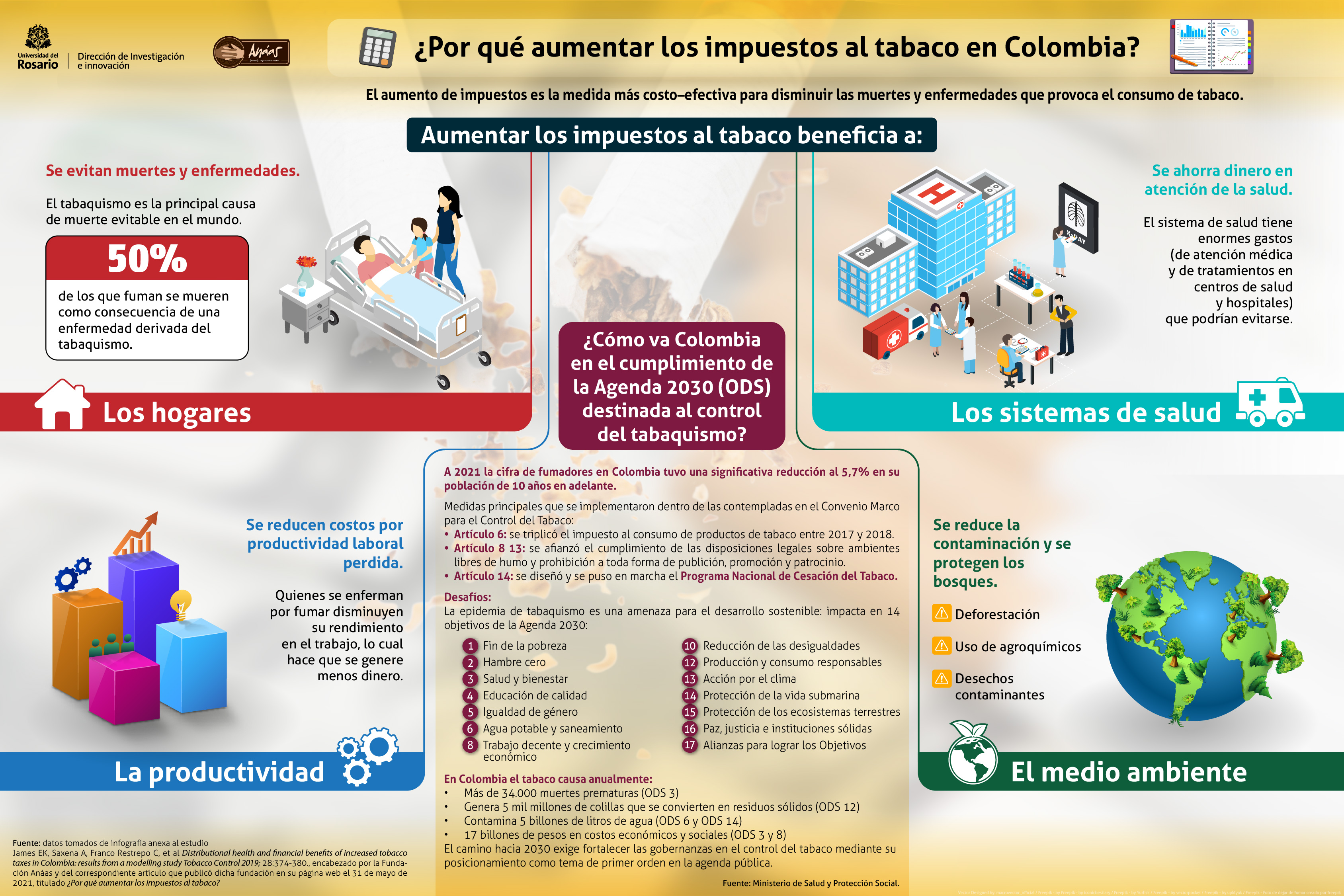 En definitiva, con estos resultados Colombia no solo ha logrado ponerle freno a una epidemia que anualmente causa 34.000 muertes prematuras en el país y nos representa 17 billones de pesos anuales en costos económicos y sociales, de acuerdo con cifras entregadas por Minsalud, sino que también ha conseguido que a ocho años de la fecha límite, hayamos cumplido con la meta de los Objetivos de Desarrollo Sostenible (ODS) que estipula una reducción del 30 por ciento del consumo de tabaco, a nivel global, para 2030.