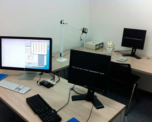 para reuniones y la aplicación de pruebas. Sala de Potenciales evocados: equipo Geodesic de 32 canales; con software NetStation y E-Prime. Permite ejercicios de registro de actividad electrofisiológica cerebral, y la medición de actividad electrofisiológica cerebral en estudios correspondientes: